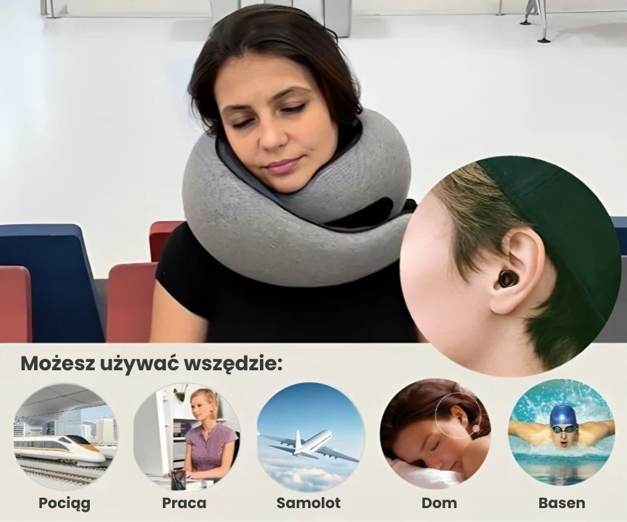 od lat mam problem z bezsennością w podróży dzięki tej poduszce wreszcie mogę się przespać w samolocie czy pociągu